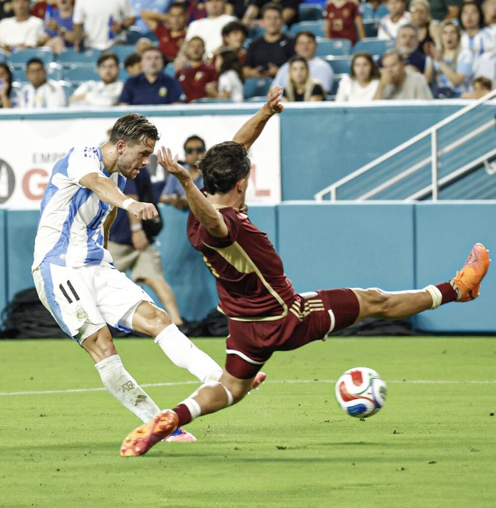 El único tanto del encuentro llegó en el minuto 31, cuando Giovani Lo Celso, tras una buena combinación con Julián Álvarez y Lautaro Martínez, disparó con precisión al arco con un zurdazo que el portero venezolano no pudo aguantar. Este gol fue suficiente para que La Albiceleste se llevara la victoria, aunque podrían haber aumentado la diferencia con mayor eficacia en sus llegadas, pero José Contreras tuvo una noche espectacular bajo los tres palos y le ahogó el grito de gol en varias ocasiones al cuadro argentino.