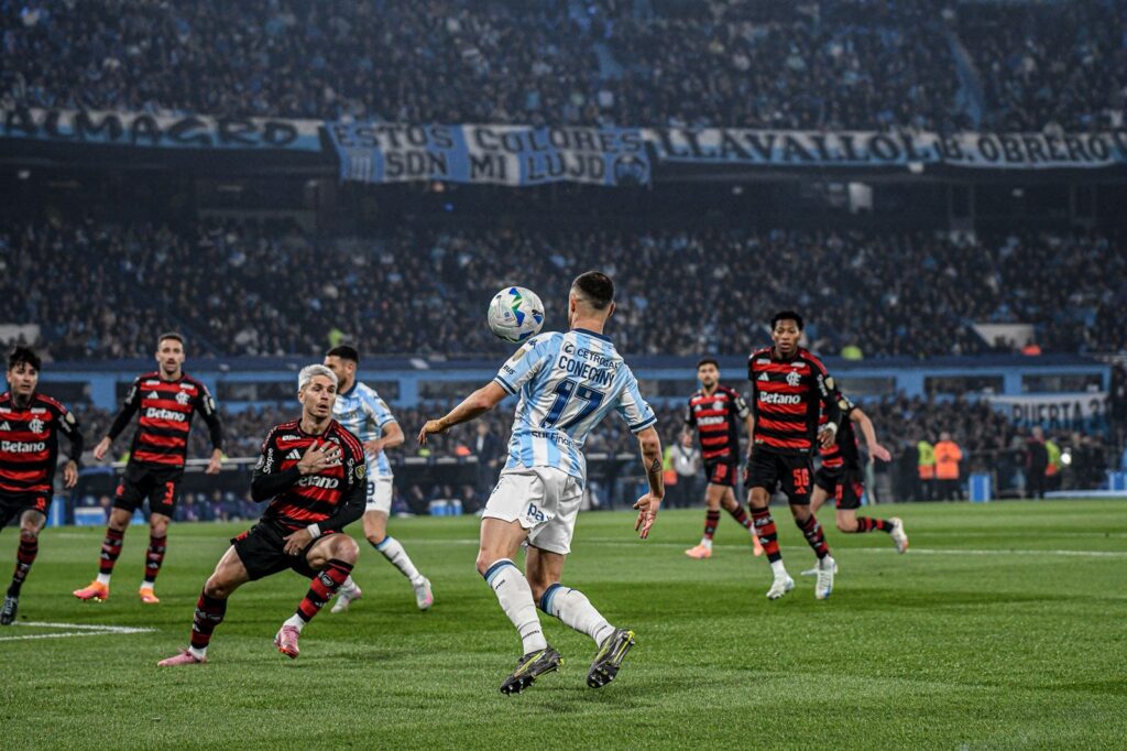 Rossi no paraba de hacer tiempo y hasta se dio el lujo de quedarse charlando con el doctor del Fla antes de un saque de arco. La gente se ponía loca. Racing era puro empuje ante un rival superior. Lo tuvo Balboa. Y lo tuvo Vietto que fusiló al exBoca con todo el tiempo del mundo y con la pelota en el aire. Otra vez ganó el 1. Este Racing rengo ( sin Pardo, Sosa y con Nardoni, Zaracho y Vietto en una pierna) le pateó 20 veces al Mengao de los 196 millones de euros y, lo más difícil, le sacó la pelota: la tuvo el 59 por ciento.