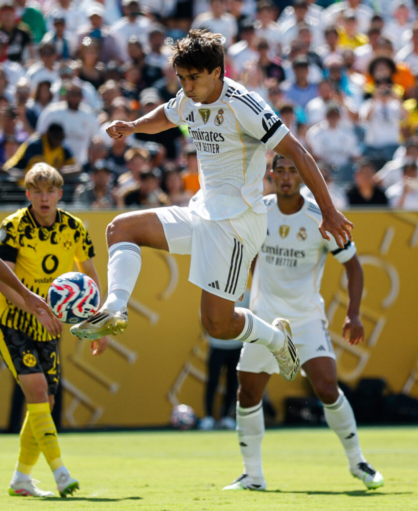 El partido comenzó con un temprano golpe para el Dortmund, cuando a los 9 minutos Gonzalo García abrió el marcador para Real Madrid con un gol que encendió a la afición. Apenas diez minutos después, a los 19, Fran García, amplió la ventaja con un potente disparo de zurda, llevando el marcador a 2-0.