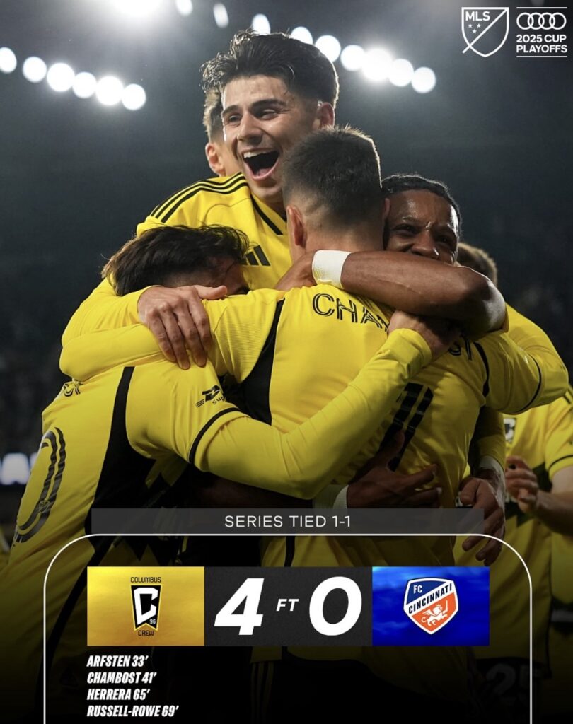 El FC Cincinnati cayó 4-0 ante el Columbus Crew en el segundo partido de la serie al mejor de tres de la primera ronda, disputado el domingo por la noche en el Lower.com Field. El decisivo tercer partido de la primera ronda de los Playoffs de la Copa MLS Audi 2025 se jugará el sábado 8 de noviembre en el TQL Stadium. La hora de inicio se anunciará este lunes por la mañana.
