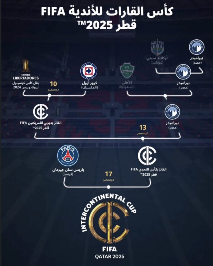 • Final de la Copa Intercontinental de la FIFA: El torneo culminará el miércoles 17 de diciembre con la final entre el vencedor de la Copa Challenger de la FIFA y el ganador de la última Liga de Campeones de la UEFA, el París Saint-Germain.