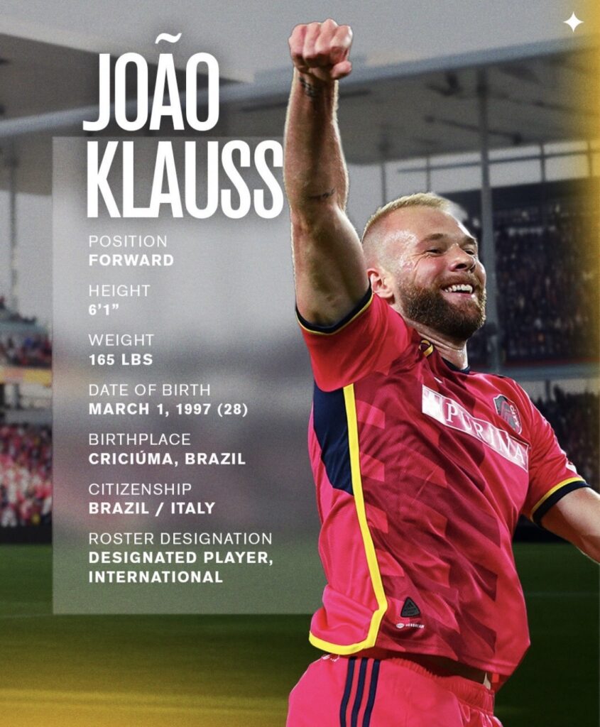 Klauss anotó un récord de 27 goles en 85 partidos con el St. Louis después de llegar como el primer Jugador Franquicia del club antes de su temporada inaugural en 2023.
