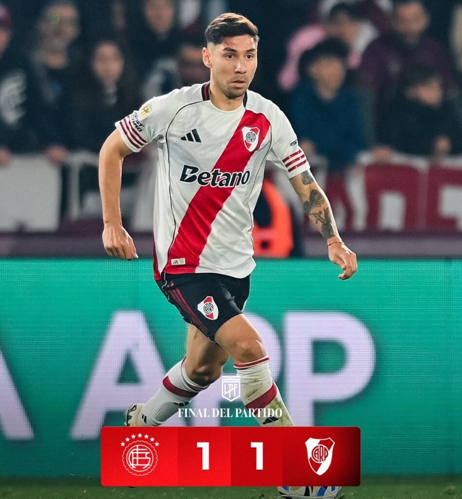 Sin embargo, la alegría de River Plate fue efímera. En un giro dramático del destino, Lanús, guiado por su entrenador Mauricio Pellegrini, no se rindió y continuó buscando el empate. En el tiempo de descuento, justo cuando todos pensaban que el encuentro se cerraría con victoria para el Millonario, Rodrigo Castillo apareció para avanzar y marcar el gol del empate en el minuto 95, en una jugada que dejó sin respuesta a la defensiva de River.