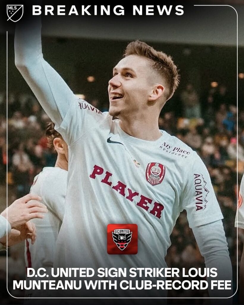El DC United anunció la incorporación de Louis Munteanu, un prometedor delantero rumano de 23 años, quien se une al club de la MAjor League Soccer, procedente del CFR Cluj, equipo de la Liga 1 de Rumania. Este fichaje se ha llevado a cabo por un monto récord para la franquicia, establecido en $7 millones (€6 millones), con la posibilidad de complementos que podrían alcanzar hasta $3 millones (€2,6 millones). Además, el acuerdo incluye una cláusula de venta del 35%.