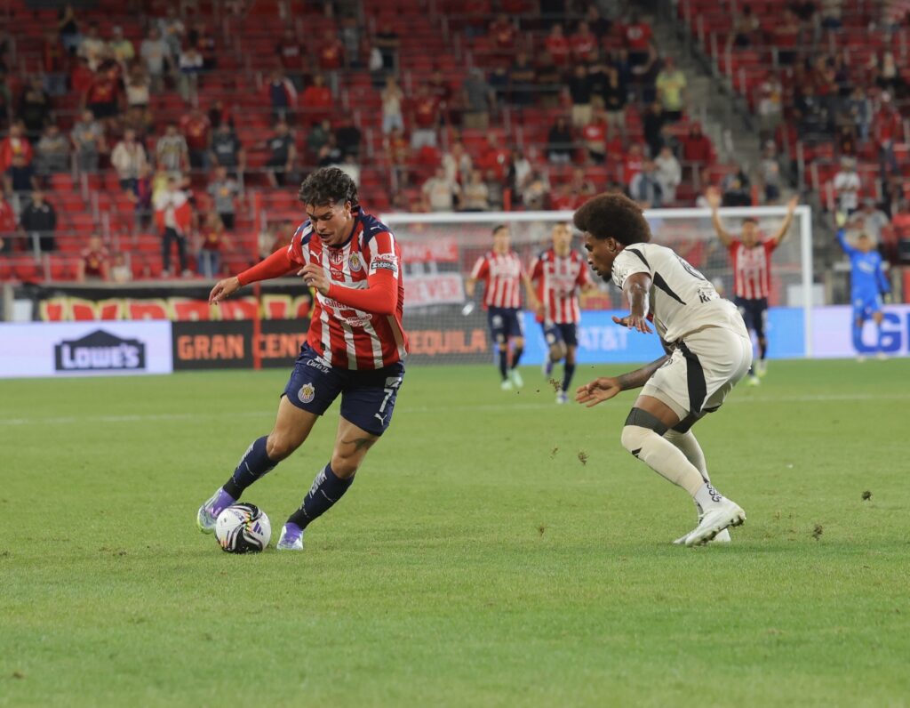 Durante la primera mitad, Chivas mostró una actitud ofensiva clara, buscando imponer su estilo de juego con oportunidades claras de gol. Sin embargo, a pesar de las oportunidades generadas por Richard Ledezma y Alan Pulido, la defensa y el portero local A.J. Marcucci se mantuvieron firmes, impidiendo que el «Rebaño Sagrado» abriera el marcador.