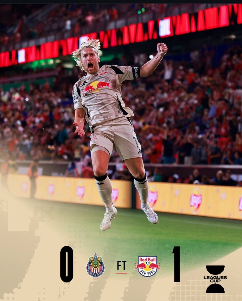 En un desafortunado estreno en la Leagues Cup 2025, las Chivas de Guadalajara cayeron ante los New York Red Bulls por 1-0 en el Sports Illustrated Stadium, en un encuentro que se definió en los últimos instantes del tiempo reglamentario. Emil Forsberg se convirtió en el héroe del partido, marcando un gol de tiro libre que dejó sin opciones al guardameta Raúl Rangel.