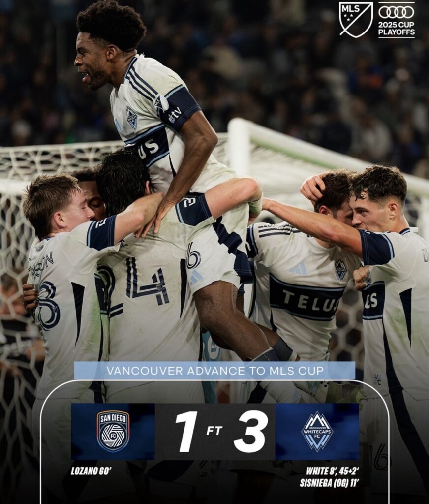 El Vancouver Whitecaps logró una contundente victoria por 3-1 sobre el San Diego FC en un emocionante partido celebrado en el Snapdragon Stadium de San Diego, California. Con esta victoria, el equipo canadiense asegura su lugar en la final de la MLS Cup 2025, donde se verá las caras con el Inter Miami de Lionel Messi, el próximo 6 de diciembre en el Chase Stadium de Fort Lauderdale.