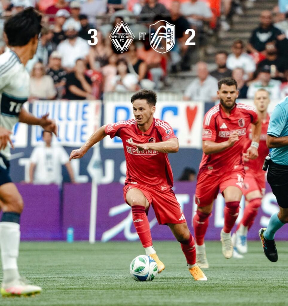 El St. Louis CITY SC sufrió una agónica derrota el sábado por la noche, al caer 3-2 ante los Vancouver Whitecaps de Canadá en el BC Place en un partido lleno de emociones y cambios de marcador.